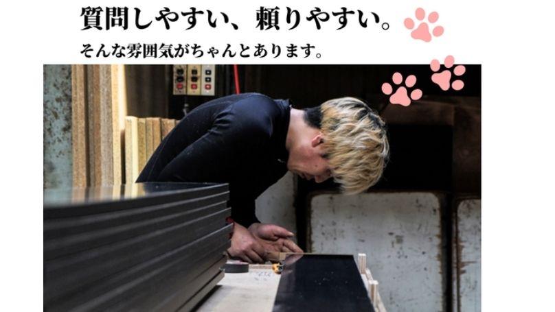 | 私たちは創業から30年以上にわたり、飲食店やサービス業向けの店舗内装家具の製造に取り組んできました。お客様一人ひとりの想いに寄り添い、空間にふさわしい家具を丁寧に形にしていくこと、、それが私たちの変わらぬ姿勢です(^○^)♪ 製造するのは、天板・パーテーション・量産家具・店舗什器など多岐にわたる製品。職人の手仕事による繊細な加工と、安定した品質管理体制のもとで、お客様に「頼んで良かった」と思っていただける家具づくりを目指しています☆彡 あなたには、家具職人を目指す第一歩として、アシスタント業務からお任せしていきます◎現場でしっかり学びながら、少しずつ職人としての技術を身につけていきましょう!♪ <具体的な業務> 初めのうちは、以下のような簡単な作業からスタートします! ■完成した商品の梱包 ■配送準備 ■先輩スタッフの製造作業のサポート 慣れてきたら、少しずつ家具製作の工程にもチャレンジ!★ ■材料の貼り合わせ ■サイズカット ■仕上げ作業 ■出荷作業 1つの製品を、各工程ごとにチームで協力しながら進めていきます(^○^) 未経験の方も安心して取り組める環境です♪ \\\ 当社のポイント /// ◇猫好きさん必見! イベント出展の際には、なんと“猫グッズ”が登場します♪ 他ではなかなか見られない、ちょっとした遊び心も忘れないのが当社の魅力! ◇上下関係ナシ!フラットで話しやすい環境♪ 年齢や役職に関係なく、スタッフ同士が対等な関係でいられるのが自慢! ちょっとした相談もしやすく、「なんでも聞ける」安心感があります! ◇困っている人を見て見ぬふり…はしません! 誰かが困っていたら、すぐに誰かが手を差し伸べる。 そんな“あたたかさ”のある職場です♪ 新人さんも不安なく馴染めるよう、周りがしっかりサポートします! ▼会社のことをもっと知る HP:https://mikado-kagu.co.jp/ Instagram:https://www.instagram.com/mikado_kagu?igsh=dDZlMXo2bHgwMGcw | |